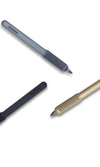 The texture, made by a diamond knurling tool, and the anodized aluminum finish give this writing tool its brilliance and charm.